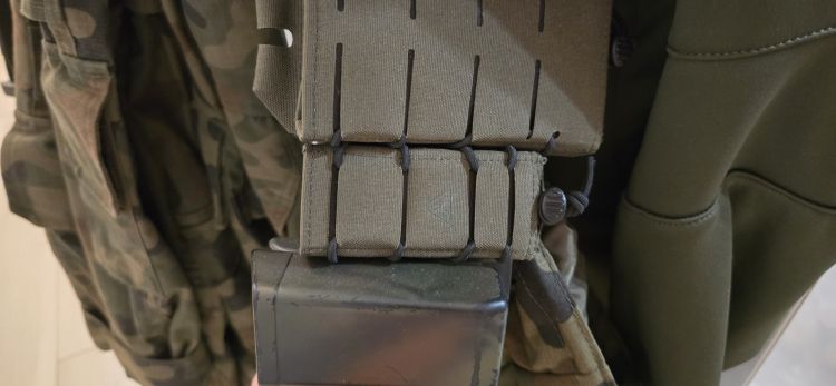 Ładownicę wykonano z laminatu Cordury z naniesionymi poprzecznymi otworami w których pociągnięto gumkę od retencji. Tak stworzone wyposażenie posiada naturalną sztywność bez potrzeby dodatkowych wzmocnień konstrukcji. Ładownicę posiada mocowanie częściowo usztywnioną taśmą w standardzie MOLLE/PALS co pozwala na montaż na kompatybilnych kamizelkach taktycznych lub bezpośrednio na pasie z wyposażeniem.