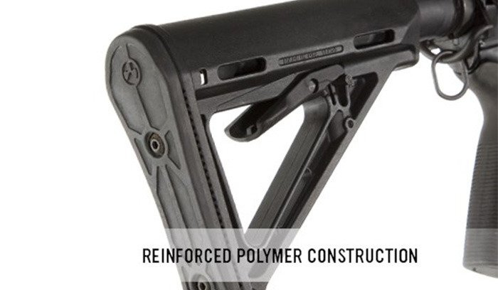 Ultralekka, minimalistyczna kolba MOE® (Magpul Original Equipment) dostosowana do prowadnic typu mil-spec, wykonana w USA przez Magpul Industries Corp.