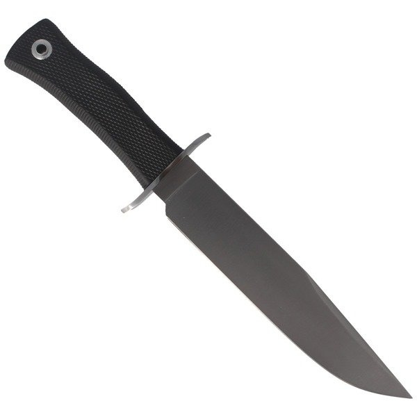 Rękojeść - pokryta elastyczną moletowaną okładziną z elastomeru w kolorze czarnym. Miękka rękojeść z gumy gwarantuje bardzo dobrą przyczepność, nóż nie wyślizguje się z dłoni, a mocny i pewny chwyt pozwala na wykonywanie precyzyjnych ruchów nożem mimo swoich rozmiarów. W tylnej części rękojeści znajduję się powiększony otwór na linkę.