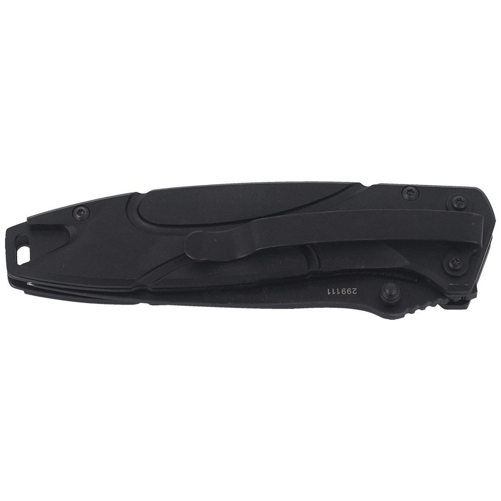 Głownia - o profilu Drop Point, grubości 2.9 mm, wykonana ze stali nierdzewnej AISI 420 hartowanej w przedziale 54-57 HRC charakteryzuje się dużą odpornością na korozję. Matowa powłoka w kolorze czarnym nadaje taktyczny wygląd oraz eliminuje odblaski. Ostrze częściowo ząbkowane typu Combo wyprowadzono szlifem płaskim Flat Grind. Obustronny kołek Thumb Stud umożliwia otwarcie noża jedną ręką. Głownia posiada blokadę typu Liner-Lock.
