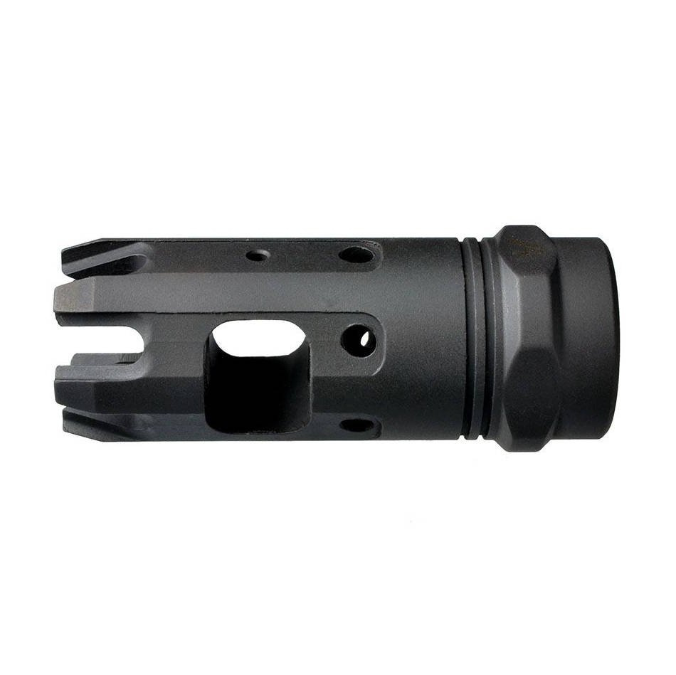 • Hybrydowe urządzenie wylotowe, łączące ze sobą kompensator z hamulcem wylotowym. Skutecznie zmniejsza odrzut i błysk po wystrzale, a także rozprasza odprowadzane na boki gazy. Wytrzymała konstrukcja ze stali nierdzewnej z powłoką fosforanową.
