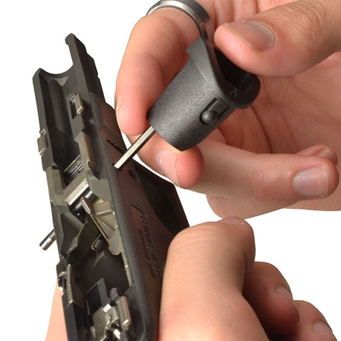 Wykonane z polimeru akcesorium do pistoletów pełnowymiarowych i kompaktowych Glock Gen 3 montowane w otwór w chwycie broni. Zawiera śrubokręt / klucz imbusowy 7/64" służący zarazem jako wybijacz do pinów oraz zbiornik na olej konserwujący.