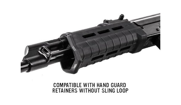 Montaż jest niezwykle łatwy, i tak jak w oryginale nie wymaga stosowania narzędzi. Sloty M-LOK® na bokach oraz spodzie pozwalają na montaż chwytu pionowego oraz oświetlenia taktycznego. Perforacja na górnej części poprawia wentylację rury gazowej. Poza dołączoną w zestawie górą chwyt jest również kompatybilny z UltiMAK Optics Mount pozwalającym na przeniesienie celownika na front.
