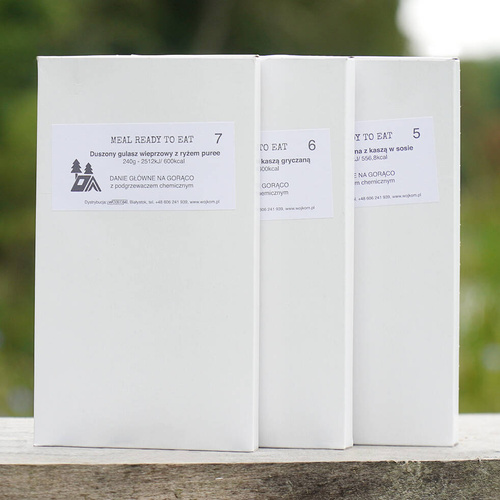 Danie główne MRE to naturalne składniki w postaci pasteryzowanego mięsa wraz z dodatkami, które dzięki hermetycznemu zapakowaniu posiadają długi czas przydatności do spożycia. Co istotne, żywność tego rodzaju może być spożywana na zimno lub na ciepło.