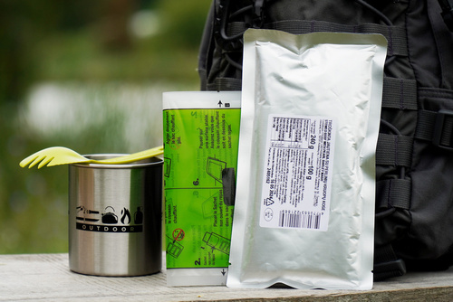 W skład zestawu wchodzi danie główne MRE oraz aktywowany wodą podgrzewacz chemiczny (patent US Army). Może to być zarówno woda, której używa się do picia jaki i woda z np. z jeziora czy z kałuży.