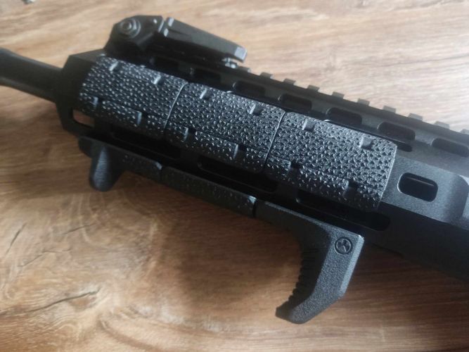 Bardzo dobrze wykonane okładziny, proste w montażu. Nie posiadają żadnych luzów. Przyjemna i agresywna faktura, taka jak w chwycie pistoletowym Moe K2. Posiadają sporą odporność na uderzenia