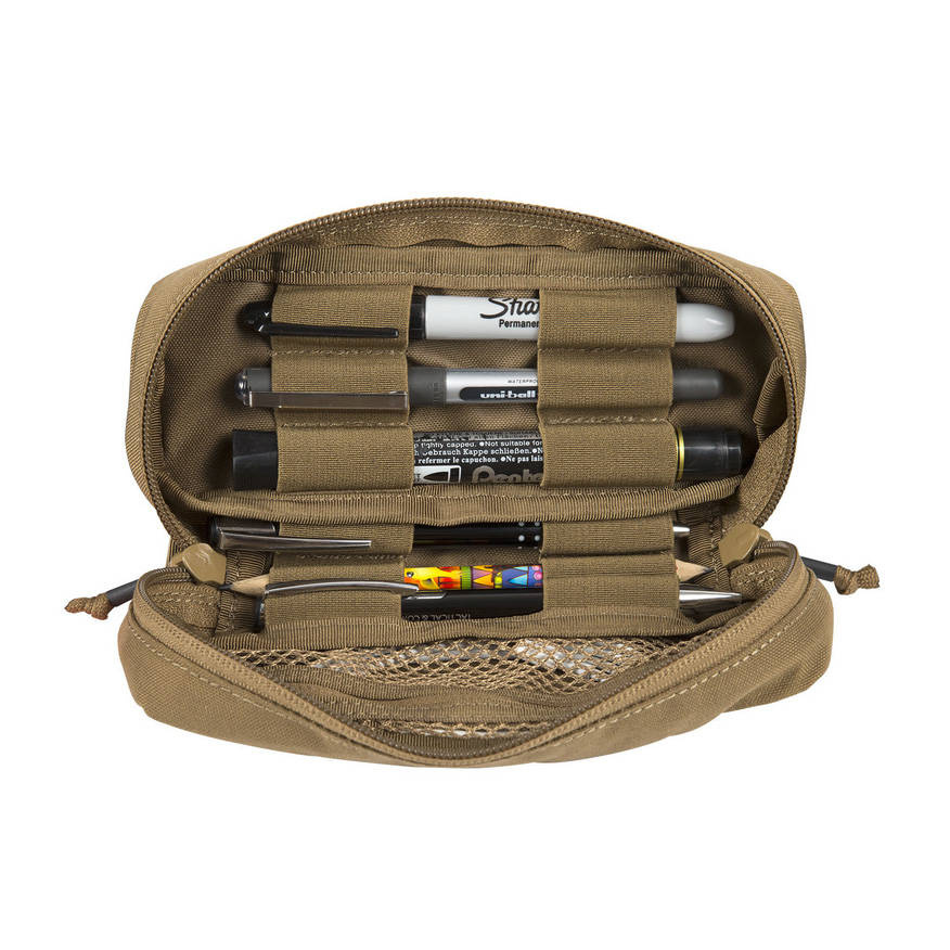 Organizer w formie piórnika do uporządkowania przyborów biurowych od firmy Helikon. Został wykonany z nylonowej tkaniny Cordura, charakteryzującej się dużą odpornością na zużycie i ścieranie. Wewnątrz użytkownik ma do dyspozycji sześć przegródek na długopisy taktyczne, ołówki, a nawet narzędzia takie jak śrubokręty oraz pojedynczą siatkowaną kieszeń na zamek błyskawiczny.