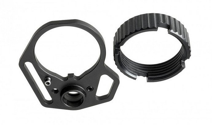 Płytka została wyposażona w trzy porty różnych systemów montażu zawieszenia: QD, taśmy 1.25" oraz klamry typu hook clip. Dzięki systemowi antyrotacyjnej nakrętki płytka jest idealnie stabilna i nie istnieje zagrożenie luzowania pod wpływem wstrząsów przy strzelaniu.