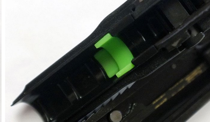 Wykonano ją z poliuretanu, doskonale redukuje zużycie elementów pistoletu oraz zwiększa komfort i skuteczność strzelania. Ograniczenie obciążenia mięśni siłą odrzutu pozwala na zachowanie większej kontroli nad kolejnym strzałem.