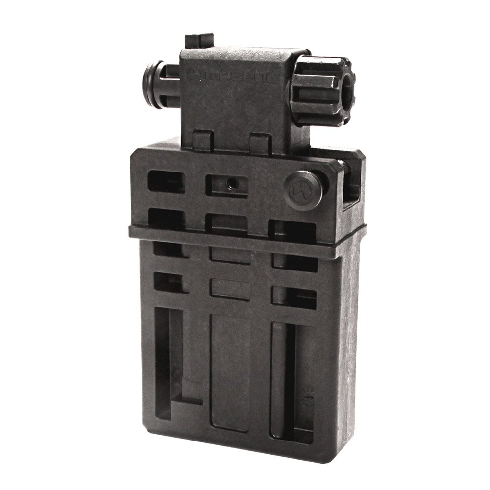 Wypust wyposażony w uszczelkę dodatkowo pozwala na wykorzystanie suwadła dla zapewnienia maksymalnej stabilności, a pin dołączony do zestawu zastąpi odpowiednik w komorze spustowej (pivot pin) podczas montażu. Część odpowiedzialna za montaż w imadle może być po obróceniu stosowana jako podstawka mocowana w gnieździe magazynka.