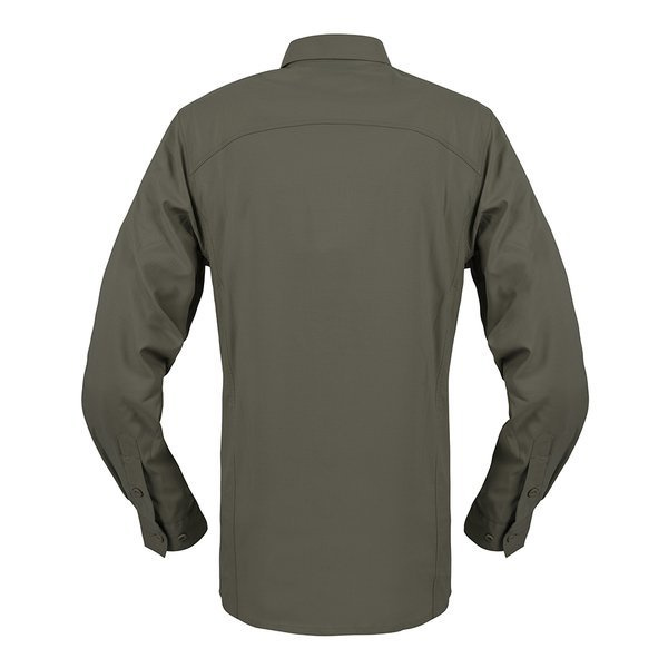 Koszula Helikon-Tex® Defender Mk2 Tropical Shirt® to wariant o lekkiej konstrukcji ukierunkowanej na wysokie temperatury. Krój oparto na pełnej listwie guzikowej i kołnierzu stabilizującym ułożenie przy szyi. W strefie piersi zastosowano cztery kieszenie o zróżnicowanym dostępie: dwie naszywane z klapkami zapinanymi na rzep oraz dwie płaskie kieszenie typu napoleon z zamkami, ukryte w pionowych cięciach.