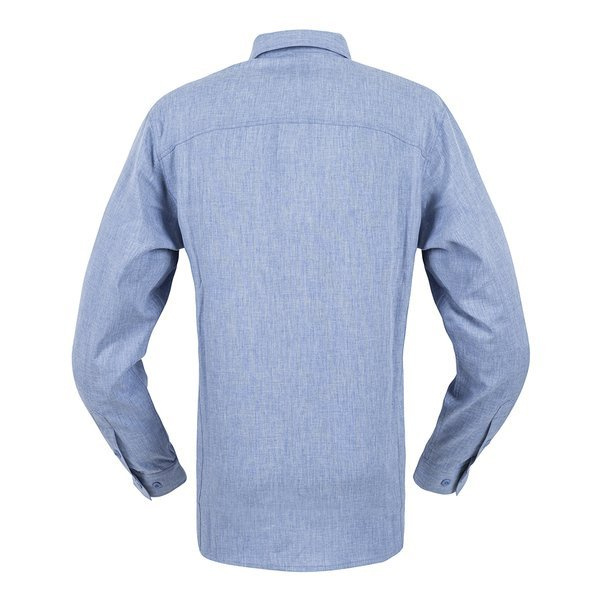 Materiał charakteryzuje się dobrym odprowadzaniem wilgoci, a współczynnik UPF 30 ogranicza przenikanie promieniowania UV. W strefie piersi zastosowano cztery kieszenie: dwie naszywane z klapkami zapinanymi na rzep oraz dwie płaskie kieszenie zamykane suwakami YKK®, rozmieszczone poniżej klapek. Pod pachami znajdują się wstawki wentylacyjne poprawiające wymianę powietrza w miejscach o podwyższonej temperaturze. Krój o profilowanej linii barków ułatwia zakres ruchu, a mankiety mają regulację obwodu. Na listwie umieszczono pętlę ułatwiającą odwieszenie okularów. Elementy zapięć wykorzystują guziki z subtelnym znakowaniem producenta.