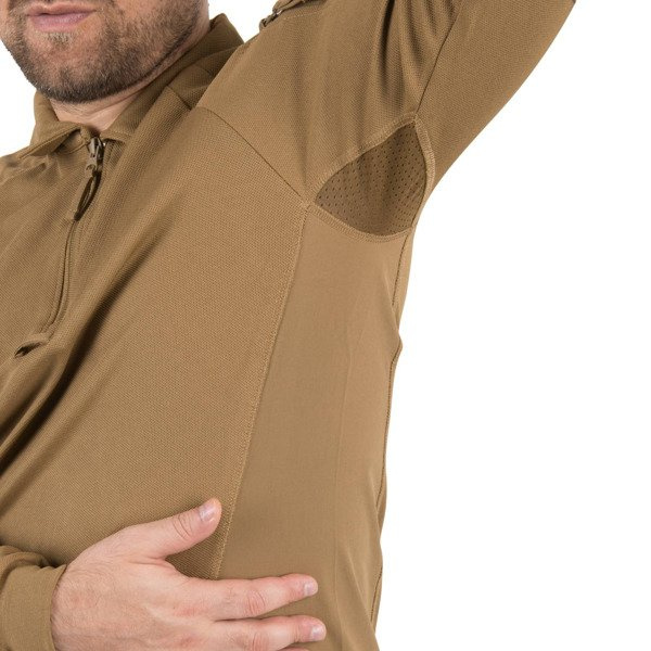 Producent umieścił na łokciach kieszenie na wkłady ochronne. Pod centralnym zamkiem marki YKK® wszyto praktyczną pętlę na okulary. Dzięki wzmocnionym szwom i trwałym materiałom koszula sprawdza się w wymagających warunkach treningowych, a jej klasyczny krój polo sprawia, że nadaje się również do codziennego użytkowania. Można ją nosić ze spodniami taktycznymi czy kamizelką taktyczną.