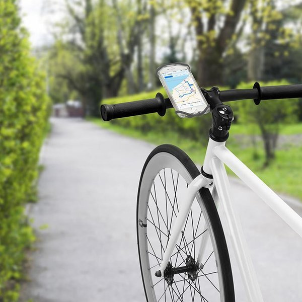 Montaż elementu nie wymaga stosowania narzędzi. Produkt gwarantuje bezpieczeństwo telefonu nawet podczas intensywnej jazdy w terenie.