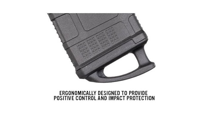 Element jest w pełni dostosowany do użytku z magazynkami i zastępuje fabryczną stopkę, doskonale wpasowując się w korpus. Ergonomiczna konstrukcja ucha doskonale sprawdzi się w sytuacjach wysokiego stresu, zarówno podczas służby, jak i na zawodach strzelectwa dynamicznego gdzie liczy się każda setna sekundy, zapewniając lepszy chwyt magazynka i jego szybszą wymianę w broni.