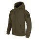 Gęsty splot tkaniny wykonanej proporcjonalnie z bawełny i poliestru poprawia odporność na wiatr i gwarantuje dobrą izolację termiczną. Dzięki zastosowaniu tworzywa syntetycznego bluza lepiej odprowadza wilgoć oraz jest elastyczna, przez co pozwala na większą swobodę ruchów. Wnętrze zostało wyłożone syntetyczną siatką poprawiającą odporność na zużycie. Wykonane zostały z niej również kieszenie wewnętrzne, umożliwiające na wygodne przenoszenie przedmiotów rozmiaru telefonu lub okularów przeciwsłonecznych.