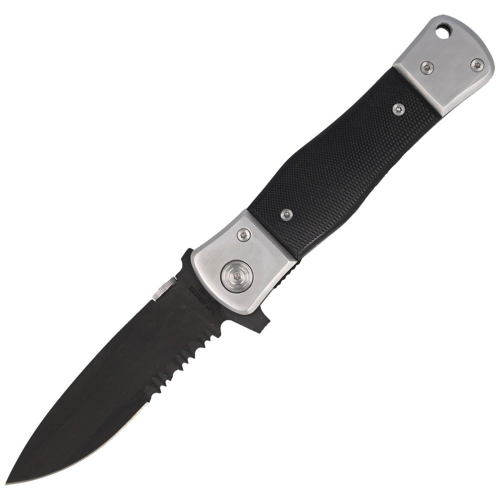 229512, CNC Italian Drop Point niemieckiej marki Herbertz Solingen. Folder odwołujący się designem do klasycznego włoskiego noża sprężynowego, tradycyjnego Italian Stiletto, solidnego i wytrzymałego. Piękno noża podkreśla eliminująca odblaski, matowa powłoka głowni typu BT (Black Teflon). Wykonana technologią "CNC Technology Cut", charakteryzuje się bardzo dobrym trzymaniem ostrości oraz wysoką odpornością na korozję.