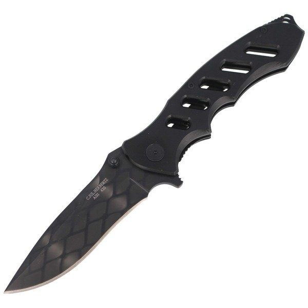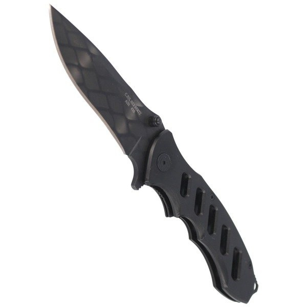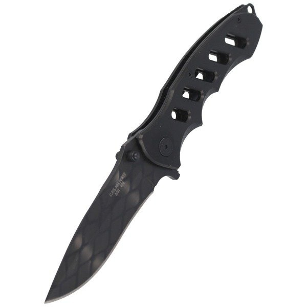 Głownia - grubości 3 mm o profilu Drop Point z krawędzią tnącą w kształcie fali (Recurve) zapewnia doskonałe właściwości tnące. Krawędź ta jest stosowana w dobrych nożach taktycznych, survivalowych oraz myśliwskich. Klinga wykonana ze stali nierdzewnej AISI 420. Flipper oraz obustronny kołek Thumb Stud umożliwia szybkie otwarcie noża. Blokada typu Liner-Lock. Klingę osadzono na osi głównej śrubą typu torx, którą możemy regulować luzy oraz siłę potrzebną do otwarcia głowni.