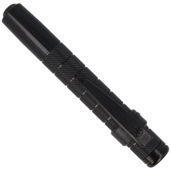 Klips - zdejmowany Nexus Clip. Może być mocowany w wielu pozycjach m.in. góra/dół co ułatwia indywidualne dopasowanie sposobu noszenia pałki przez użytkownika - ukrycie batona oraz szybki dostęp do niego w razie potrzeby.