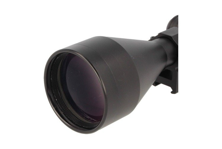 Siatka celownicza - składa się z nie zasłaniającego celu cienkiego krzyża numer 4 z centralnie podświetlanym na czerwono punktem Red Dot z 11 stopniową regulacją jasności oraz trzech grubszych belek. Rozmiar siatki pozostaje zawsze taki sam, pomoże namierzyć cel nawet w warunkach szczątkowego oświetlenia. Jeden z najbardziej popularnych krzyży używanych w celownikach optycznych.