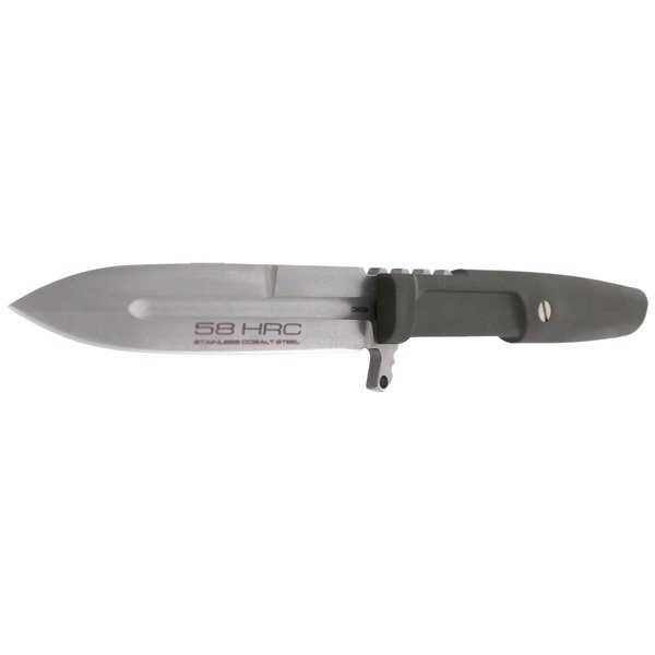 Głownia - ostra o profilu Spear Point, grubości 4 mm ze zbroczem (blood groove) oraz zwiększającym właściwości przebijające fałszywym ostrzem. Wykonana z dobrze trzymającej ostrość, wytrzymałej wysokokobaltowej stali nierdzewnej N690 o twardości 58 HRC wytwarzanej w austriackiej hucie Böhler. Klingę wykończono maskującą drobne rysy, nierefleksyjną powłoką Stone Washed. Ostrze gładkie typu Plain wyprowadzono szlifem płaskim (Flat grind) zapewniającym dobre właściwości tnące.  Na grzbiecie klingi długie karbowane oparcie pod kciuk (upper jimping). U nasady głowni jednostronny karbowany stalowy jelec chroniący dłoń.