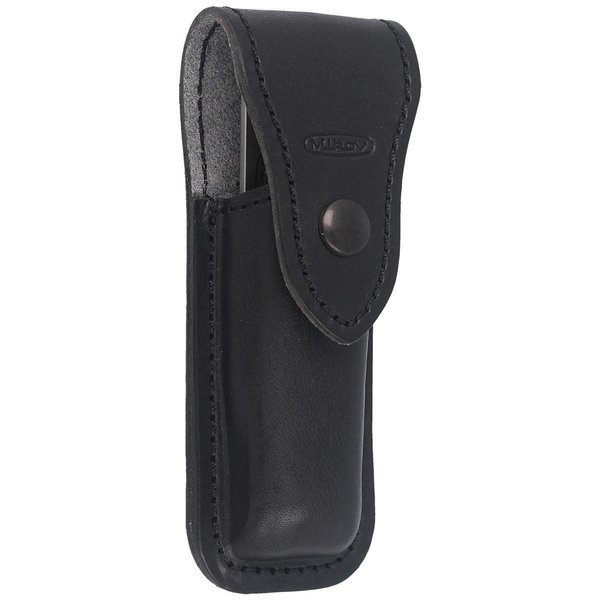 Etui - zapinane na zatrzask, wykonane z naturalnej skóry w kolorze czarnym. Pochwa posiada mocowanie do pasa lub oporządzenia umożliwiające przenoszenie noża w pozycji pionowej.