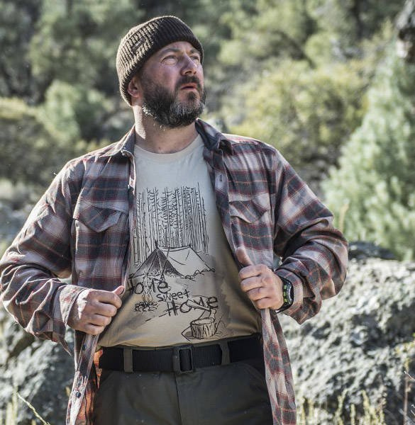 W przedniej części znajduje się sporych rozmiarów nadruk, który przedstawia rozbity w lesie obóz i napis "Home Sweet Home". Nadruk jest trwały i odporny na wielokrotne pranie. Stworzona z myślą o pasjonatach bushcraftu i wypoczynku na łonie dzikiej natury. Sprawdzi się zarówno na co dzień, jak i podczas aktywności outdoorowych, można połączyć ją ze spodniami taktycznymi. Koszulka pozwala użytkownikowi wyrazić pasję do outdooru i przygód.