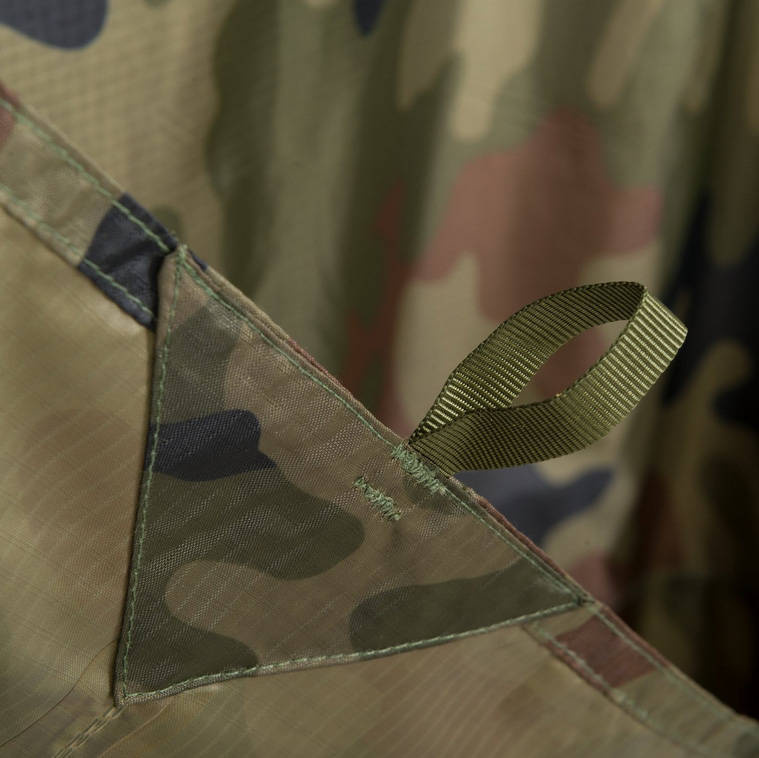 Supertarp Small od firmy Helikon to kompaktowa wersja uniwersalnej płachty biwakowej, przeznaczonej do budowy schronienia w terenie. Wykonano ją z lekkiego poliestru o splocie ripstop, który w połączeniu ze wzmocnionymi punktami mocowania - aż dziewiętnastoma! - i klejonymi szwami zapewnia również wysoką wytrzymałość.