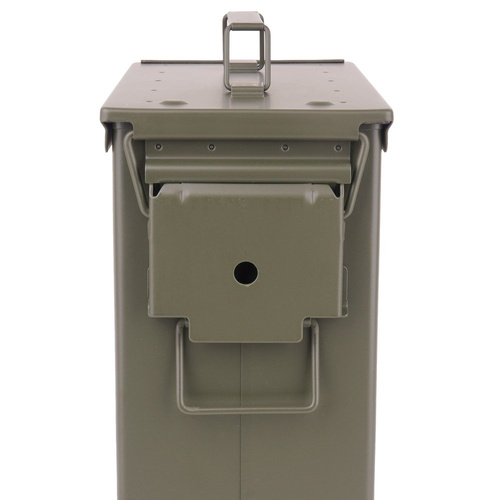 Puszka amunicyjna wyposażona jest w solidny uchwyt transportowy na górnej klapie, oraz solidne zamknięcie z gumową uszczelką - chroni ona przed dostawaniem się do wnętrza puszki wilgoci oraz pyłu.