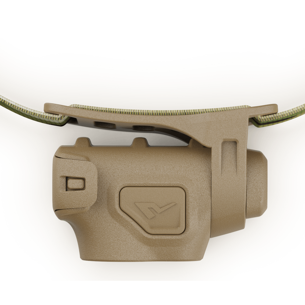 Korpus latarki zamocowany jest na przegubie, co umożliwia regulację kąta świecenia. Konstrukcja spełnia normę szczelności IPX4, chroniąc przed zachlapaniem w deszczu. Latarka mocowana jest na regulowanej, elastycznej opasce, kompatybilnej z hełmami i nakryciami głowy. Zasilana jest dwiema bateriami AAA umieszczonymi z boku obudowy. Dostęp do gniazda baterii nie wymaga użycia narzędzi, co zapewnia łatwą wymianę źródła energii w terenie.