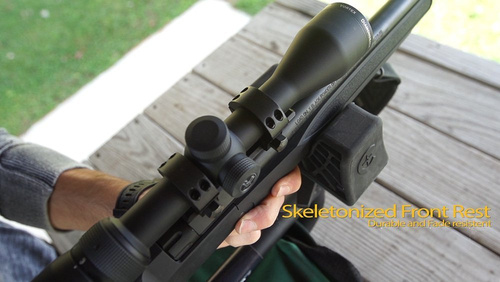 Przednia podpórka pod broń wykonana jest z antypoślizgowego tworzywa, które stabilnie trzyma broń. Miękkie wykończenia podpór eliminują ryzyko zarysowania broni.