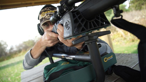 Wysokiej jakości statyw strzelecki od firmy Caldwell ułatwiający strzelanie, konfigurację i prace serwisowe broni długiej.