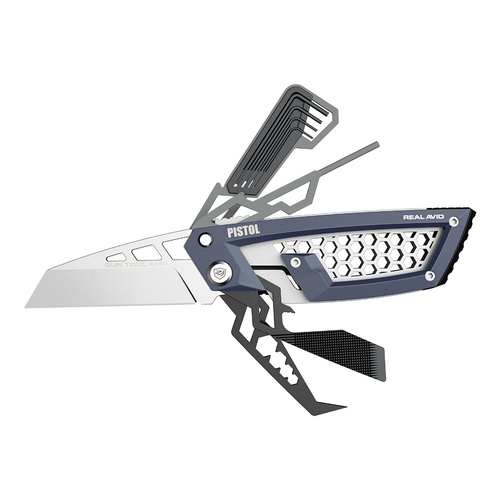 Gun Tool AMP™ to zaawansowany multitool przeznaczony do czyszczenia pistoletów od firmy Real Avid. Zawiera w sobie zestaw niezbędnych narzędzi, aby móc utrzymać w czystości broń i dokonać lekkich prac serwisowych. Multitool składa się z 24 elementów, w których skład wchodzi również składane ostrze typu Wharncliffe.