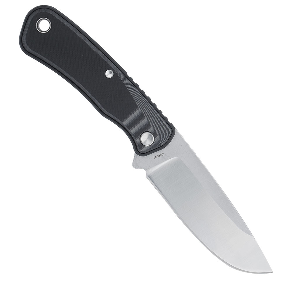Nóż myśliwski został wyposażony w okładziny z wysokiej jakości tworzywa G-10, które zapewniają pewny i bezpieczny chwyt nawet mokrymi czy zabrudzonymi dłońmi. Na ich końcu znajduje się otwór do zamocowania linki. Na fragmencie górnej części rękojeści umieszczono karbowanie, które zapewnia zwiększoną przyczepność pod palcem.