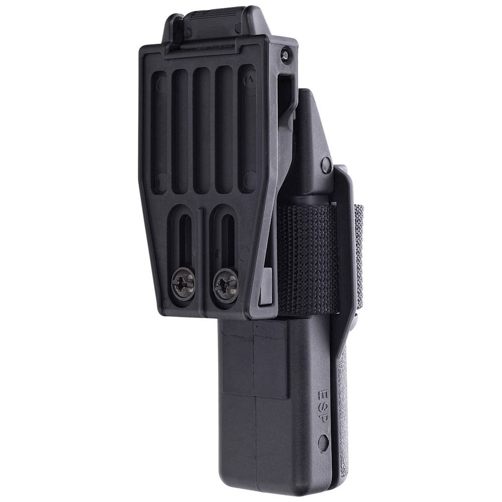 Uchwyt ESP z UBC-05 na pałkę teleskopową wykonany z wytrzymałego polipropylenu, który gwarantuje odporność na uderzenia oraz długotrwałe użytkowanie. Model UBC-05 wyposażono w innowacyjny system Quick Change, który umożliwia błyskawiczną wymianę uchwytu na inny, bez konieczności zdejmowania pasa.