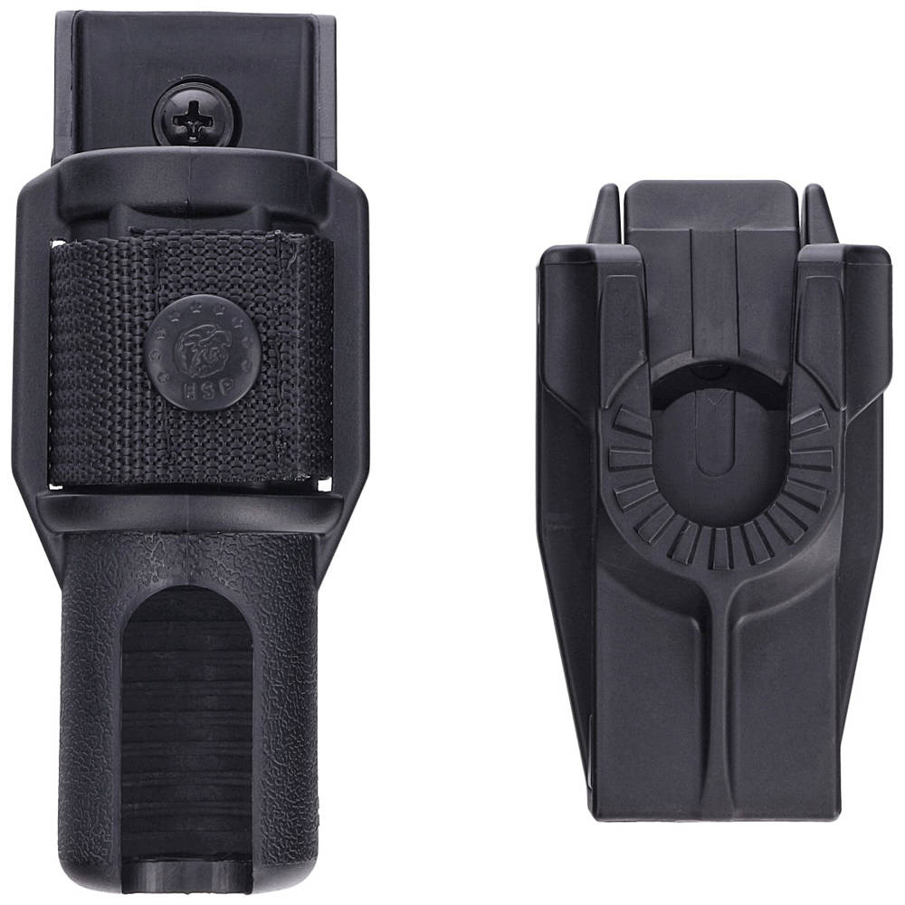 Uchwyt doskonale pasuje do pałek teleskopowych o długościach 16", 18" i 21" wyposażonych w rękojeść HL. Dodatkowo, mechanizm obrotowy pozwala na elastyczne ustawienie pałki w preferowanej pozycji, co zwiększa komfort użytkowania i szybkość reakcji w sytuacjach krytycznych. Montaż na pasach o szerokości od 32 mm do 60 mm.