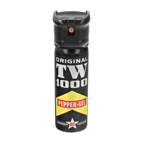 Gaz pieprzowy do samoobrony TW 1000 Pepper-Gel od firmy Hoernecke. Miotacz w formie kompaktowej puszki zwieńczonej strumieniową głowicą, rozpyla żel pod wysokim ciśnieniem na dystansie do 6 metrów. Pojemność 45 ml wystarcza na nawet kilka sekund ciągłego rozpylania lub kilka krótszych impulsów. Wyższe ciśnienie wynikające z zastosowanego nośnika środka OC niweluje niekorzystny wpływ warunków atmosferycznych.