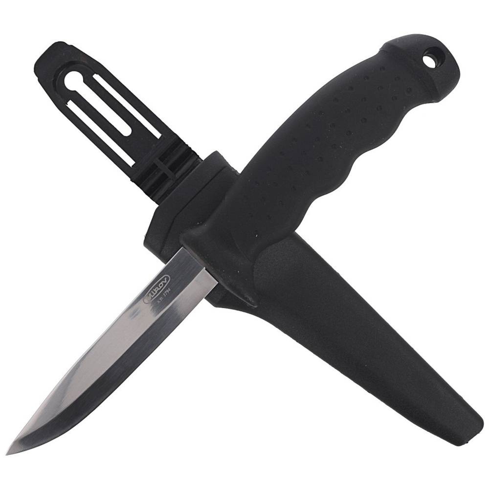 Rękojeść - odporna na wilgoć w kolorze czarnym wykonana z utwardzanego plastyku pokrytego antypoślizgowym wzorem zapewnia wygodny, pewny chwyt. Mimo swoich stosunkowo niewielkich rozmiarów nóż pewnie leży nawet w dużych dłoniach. Zaoblony kształt głowicy zapobiega zsunięciu się dłoni podczas pracy.